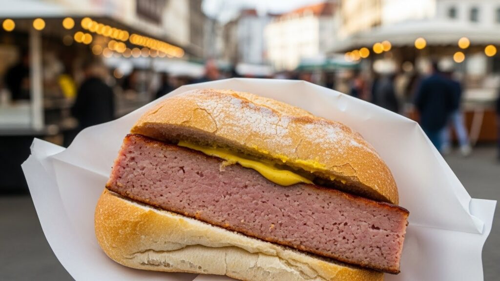 レーバーケーゼは、細かく挽いた肉を型に入れて焼き上げたミートローフのような料理。